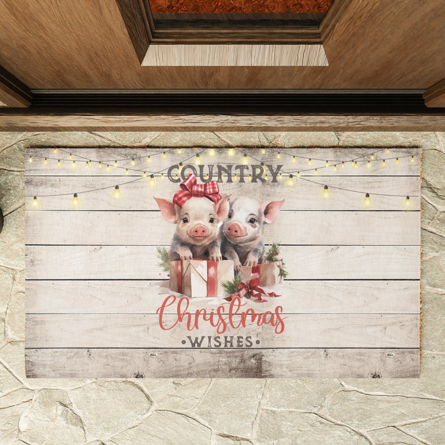 Country Christmas Wishes with Two Piglets Outdoor Rug