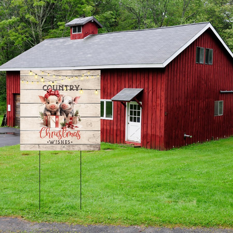 Country Christmas Wishes with Two Piglets Wrapping Paper