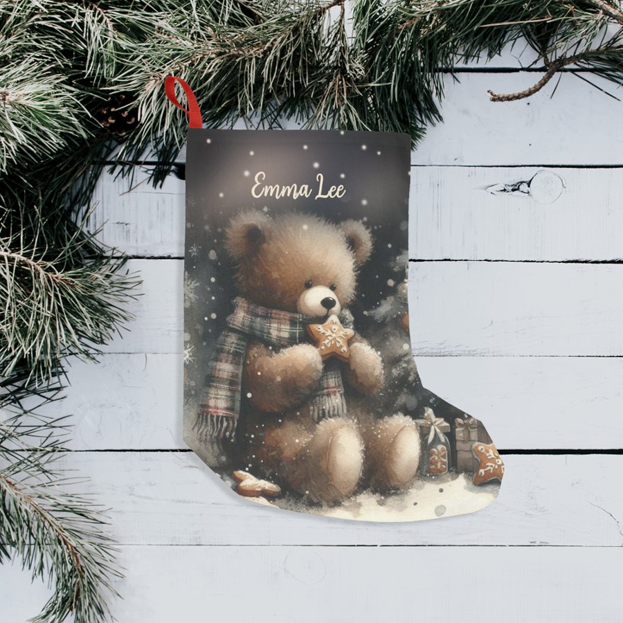 Cute Teddy Bear Christmas Monogram Small Christmas Stocking