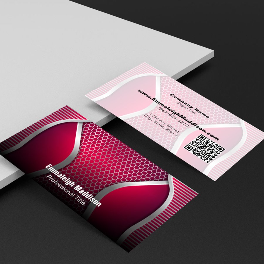 Modern abstract text template design with pink and white sporty metallic mesh background. Add your url to create a qr code.