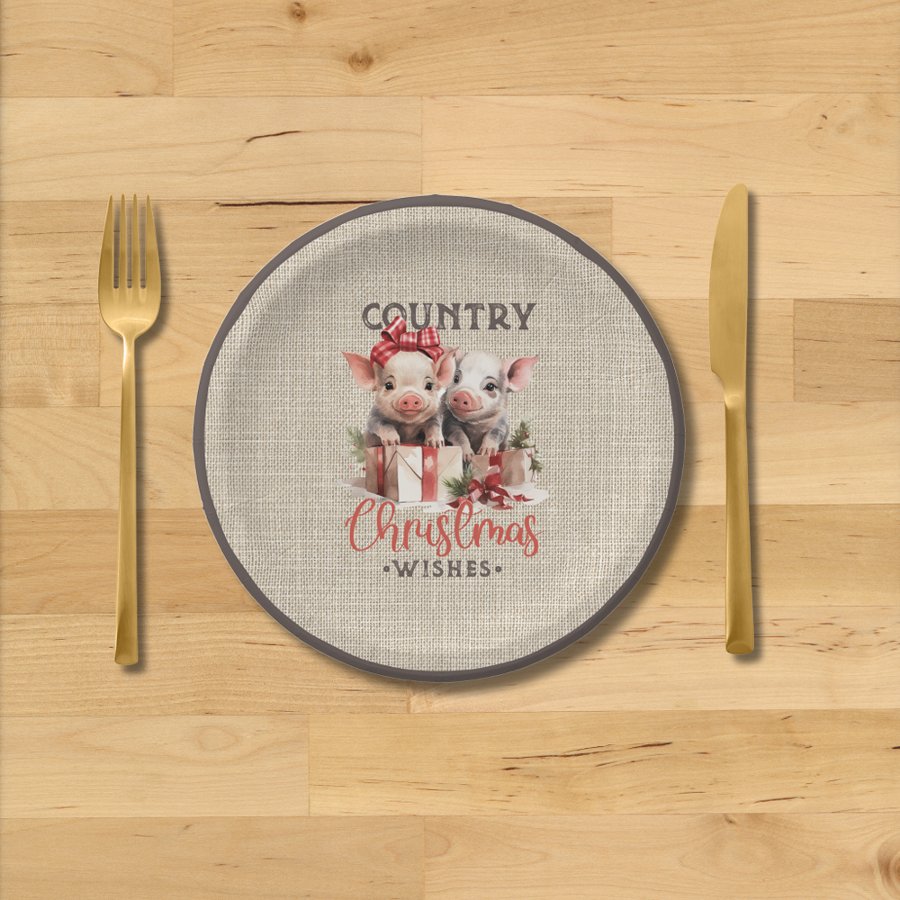 Country Christmas Wishes with Two Piglets Paper Plates